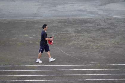(朝6時30分には、北側6コースがひき終わっていました。)