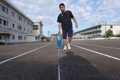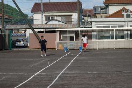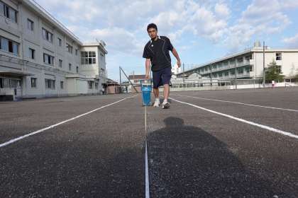ラインカーでまっすぐ線を引く・・・。職人技です!