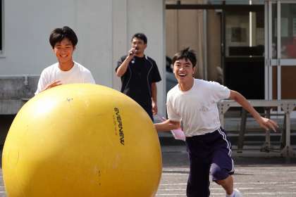 続いて大玉転がしの練習。