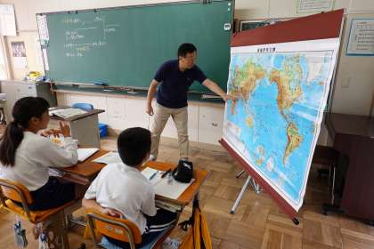 地図の準備は、教科係の生徒がしっかりと行っています。