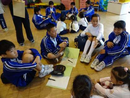 自己紹介や今度、中学生が訪問したときに遊びたいことなどを、園児の皆さんと話しました。