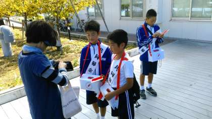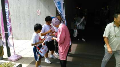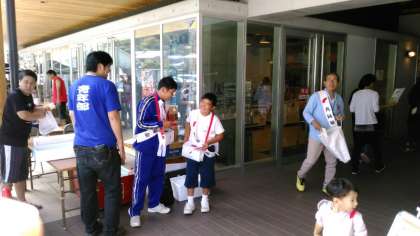 部田神社祭典の共同募金活動のボランティアに男子テニス部の一年生が協力してくれました。