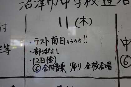 連合音楽会に向けた練習予定と共に、中間テストの予定が・・・。