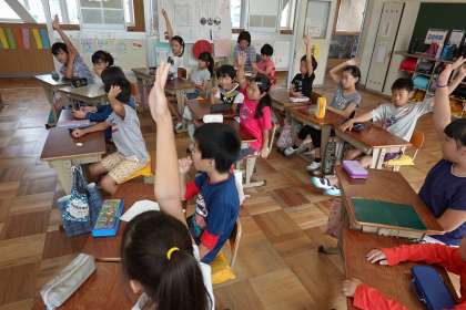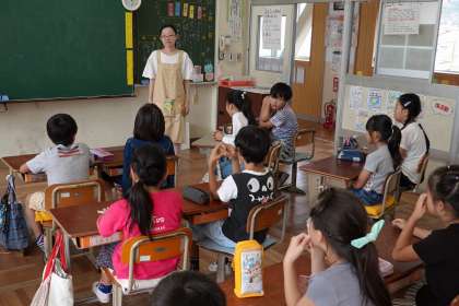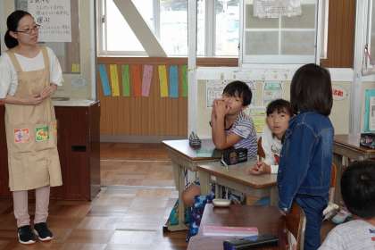 児童の皆さんは、色分けされた3つのはたらきを、楽しく反応しながら聞いています。