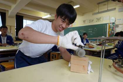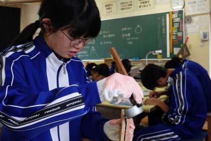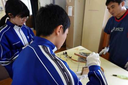 注意深く鋳込みの作業をしていました。