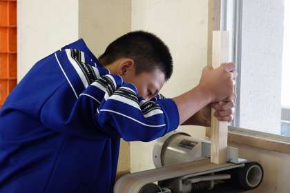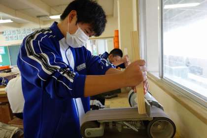 ベルトサンダーで切り口をきれいにしています。
