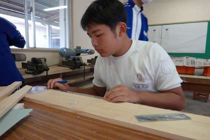 さしがねで、切断する部分を書いている生徒も・・