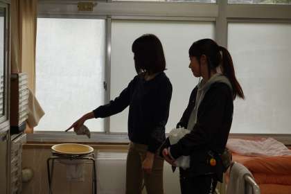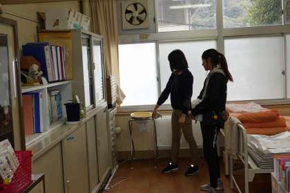 小中の養護教諭で、来年度の保健室の収納について検討していました。