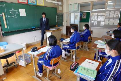 今日は、教職員研修センターから芝研修アドバイザーに起こしたいただき、授業を見ていただきました。