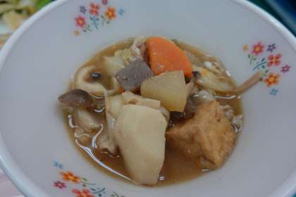 今日は、具だくさんの芋煮です。東北地方では、秋になると芋煮会が行われ、特に山形県の方は、芋煮への思いが強いそうです。