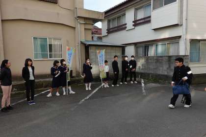 後期生徒会活動が始まり、あいさつ運動が行われています。