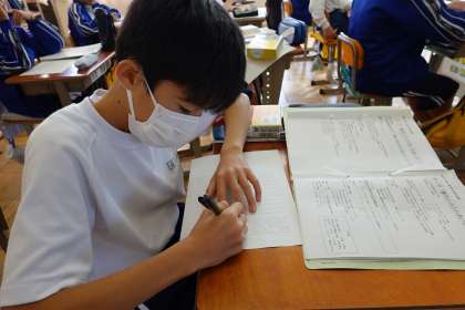 書き慣れない言葉で、敬語を遣って・・・。国語のよい学習にもなっています。