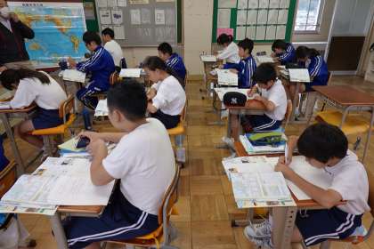 ヨーロッパ州の民族について、白地図ワークで色分けしました。