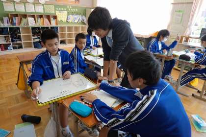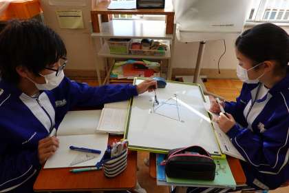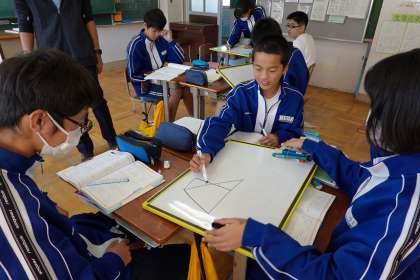 ホワイトボードを上手く利用して、証明の方法を考えていきます。