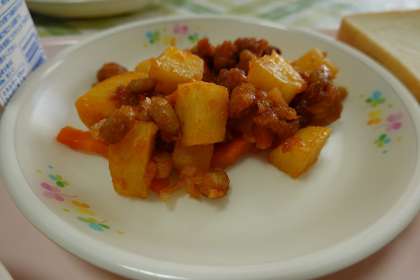 揚げた鶏肉にヨーグルトサラダと、生徒の好きそうなものばかり・・・・