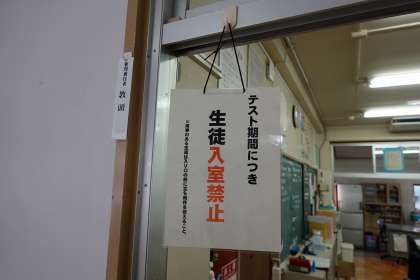 今週、木・金がテストのため、生徒の職員室への出入りが禁止になりました。
