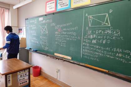 平行四辺形の定理を確認し、それを活用して証明します・・・。