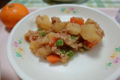 今日は 肉じゃが 甘めの味付けが最高です。とろみのついた汁も易しい味でした。