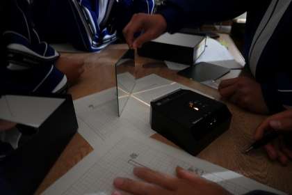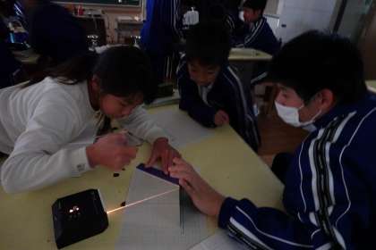 光の反射を調べています。