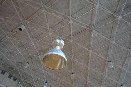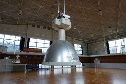 体育館の照明が切れていたため、教育委員会にお願いをして電球の交換をしました。