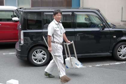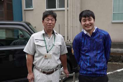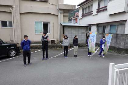 用務員の後藤さんと北垣先生、2人とも生徒に元気よくあいさつをしてくださっています。
