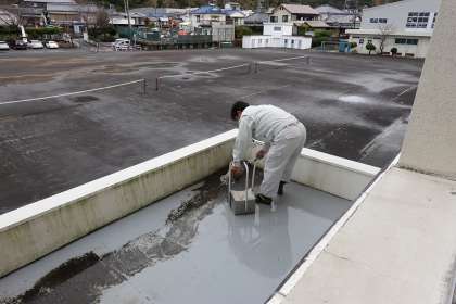 印刷室の屋根?の上を掃除してくださっています。