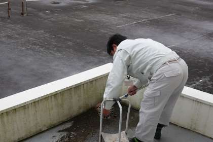 印刷室の屋根?の上を掃除してくださっています。