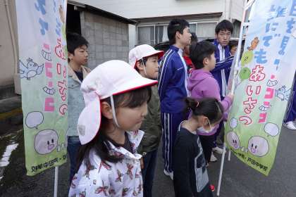 生徒会長から、集まった小中学生に話をして、解散になりました。