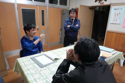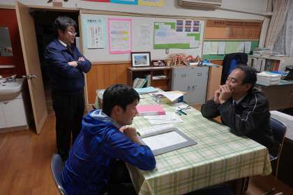 理科の授業研究に向けて小中両校長先生が、北垣先生に指導をしてくださっていました。