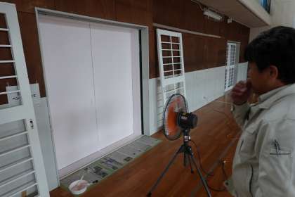ペンキが早く乾くよう、扇風機が活躍中です!