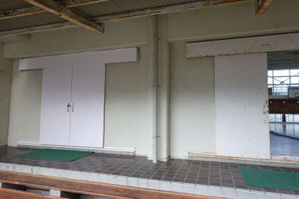 体育館の入り口を・・・