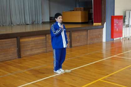 今月は、給食記念週間(1月24日〜1月30日)がありますが、一足早く、給食室の皆さんに「感謝する集会」を行いました。