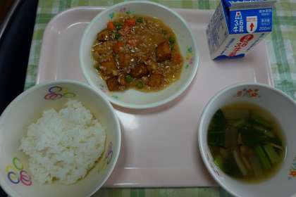 ご飯、牛乳、揚げじゃが芋のそぼろ煮、吉野汁