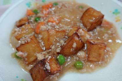 吉野汁、そぼろ煮とも優しい味付けでした。じゃが芋でボリュームも満点です!