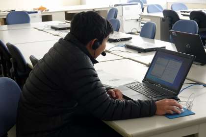 続いて、生徒が実際に使うパソコンで確認をしています。