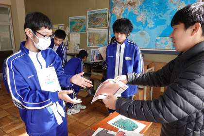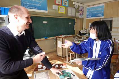 お客さん役が上手な生徒は、アーロン先生から商品をプレゼントされていました!