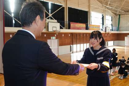その場で立っている生徒も、表彰されています。