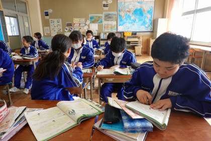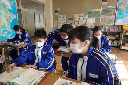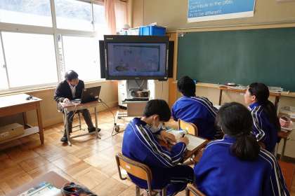 渡部先生、昨年の生徒の作品を見せて、どんな人物を紹介されているか、生徒に情報提供していました。