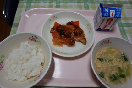 米飯、牛乳、酢豚、中華玉子スープ