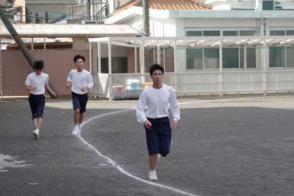 個人でペースを守って走りますが、少ない生徒でも3000mは走ります!