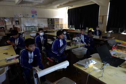 この後、電流と磁界と力の関係を表す、フレミングの左手の法則について、動画で確認していました。