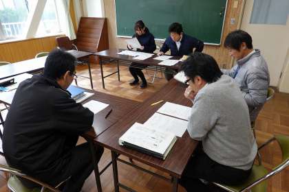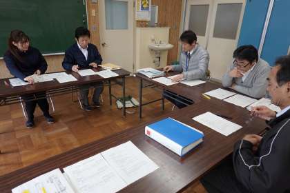 戸田小学校で、戸田小中の校長・教頭と教育委員会の改修工事の担当の方と打合せを行いました。