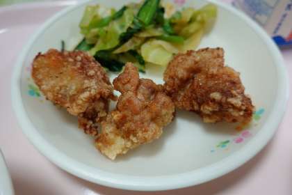 今日は、本年度最後の給食です。そこで、唐揚げがなんと3つ!生徒も大満足でした!