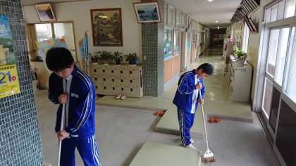 生徒がボランティア活動として、玄関の掃き掃除を行っていました。ありがとうございました。