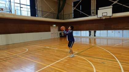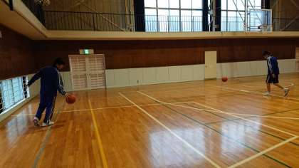 バスケットボール部の朝練習の様子です。自己課題の解決に向け、練習に励んでいました。