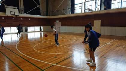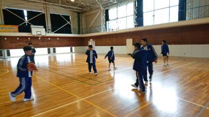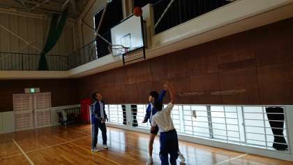 昼休みの様子です。体育館でバスケットボールを楽しんでいました。