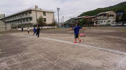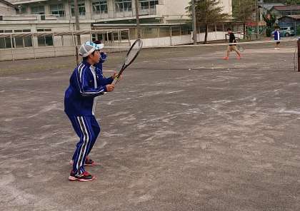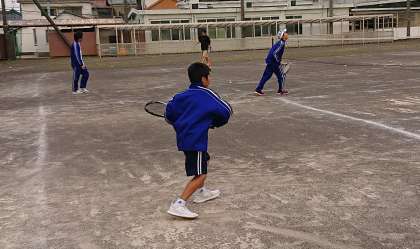 ソフトテニス部の朝練習の様子です。朝からボールを打ち込み、レベルアップを図っています。