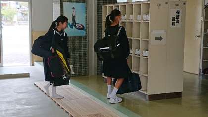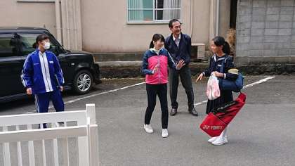 生活健康委員が朝のあいさつ運動を行っていました。生徒同士で気持ちのよいあいさつをかわしてから校舎内に入っていきます。