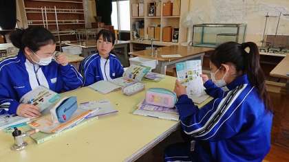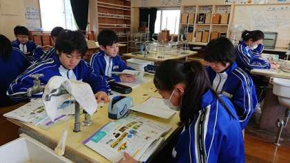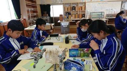 1年生は理科でルーペを使ってタンポポの花を観察をする学習をしていました。
