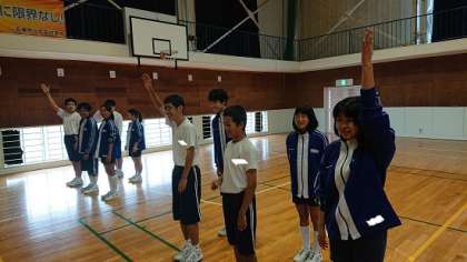 3年生は体育で集団行動を行っていました。グループごとに、姿勢・方向転換・集合・整とん・列の増減・開列・行進・足踏み・礼など、課題に合わせた動きを行っていました。